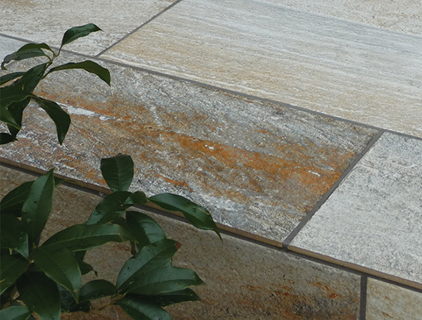 プラーガペイブは落ち着いた色味と自然な質感が特徴で、コンクリート一面仕上げよりも格が上がります。