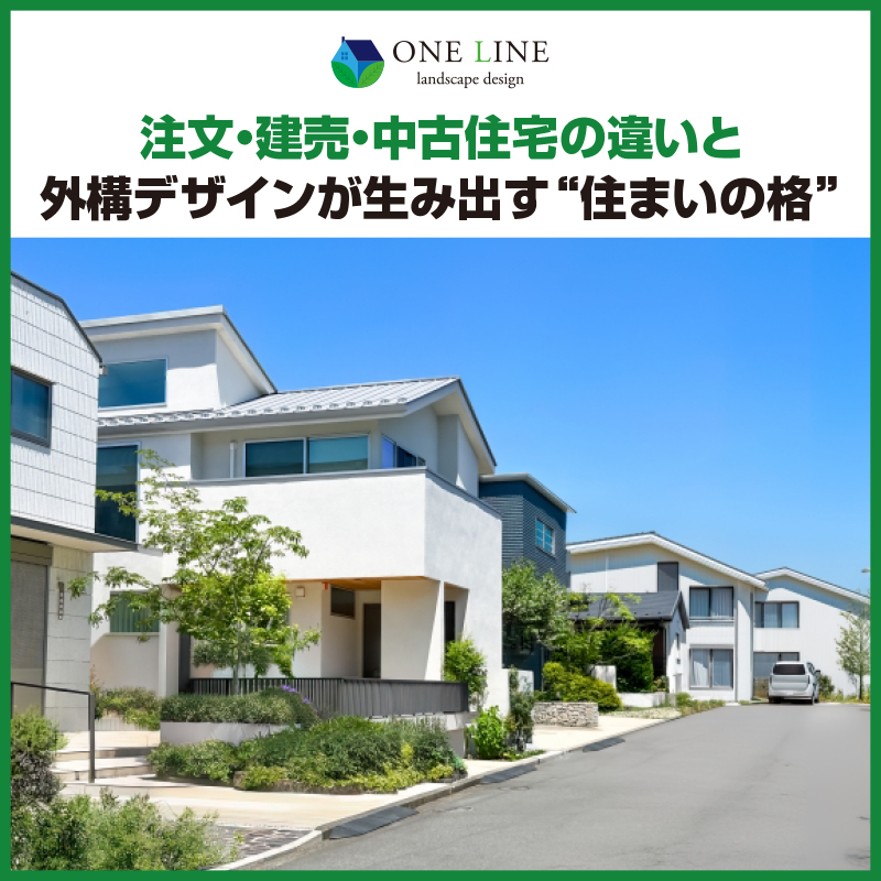 注文住宅・建売住宅・中古住宅、それぞれに特徴や価格の違いはあります。しかし住まいの本当の価値を左右するのは、外構デザインへのこだわりです。外構を整えることで、住宅タイプを超えてオリジナリティあふれる空間を手に入れることができます。