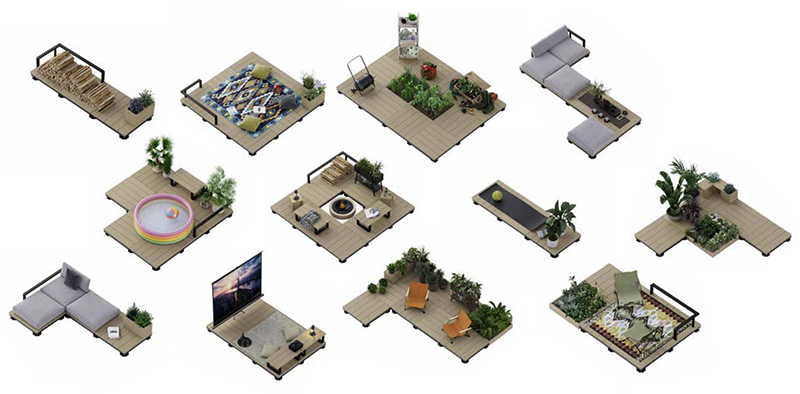 自由に組み合わせができる革新的なモジュール式デッキで、「外構空間を自分らしくデザインしたい」というニーズに応える商品です。