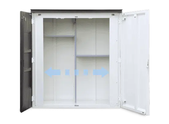 また、物置の外側(目に見える部分)にはFRP(繊維強化プラスチック)、物置内部にはスチール鋼板を採用し、それぞれ特性を活かしたデザイン形状や耐久性にもこだわっています。