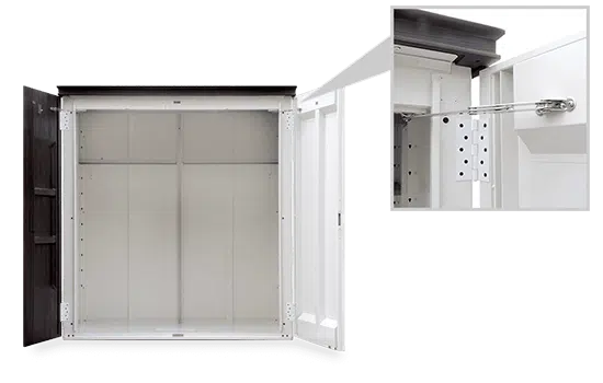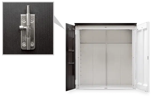 また、物置内部や外側の一部にはスチール鋼板を採用しており、収納物を安全に保管できます。