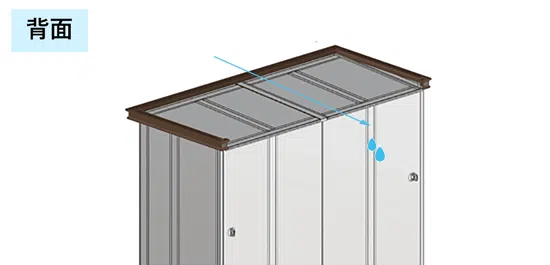 リコの屋根には後方に向かって傾斜しており、雨水を後方の地面へ落とす仕様となっています。
